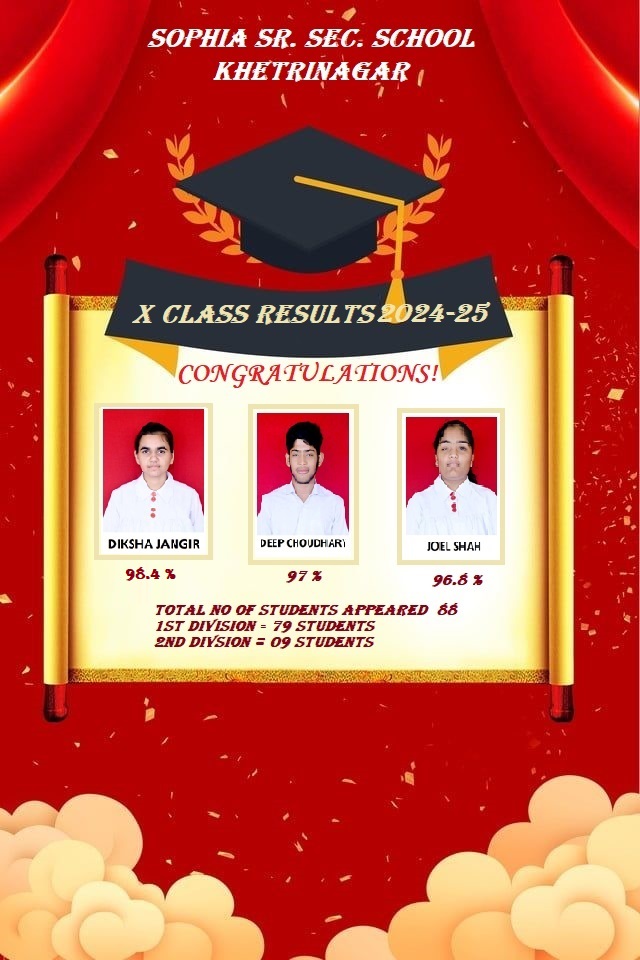 Sophia Secondary School, Khetri Nagar was founded way back in 1974, under the vigilant and loyal guidance of the Sisters and Staff. The school stands upright in all its splendor and glory crossing jubilees and celebrations to mark its progress and development in the field of teaching. It is an abode for learning values of mind and heart, a centre of perfection in the area of Academics and Co-curricular Activities.